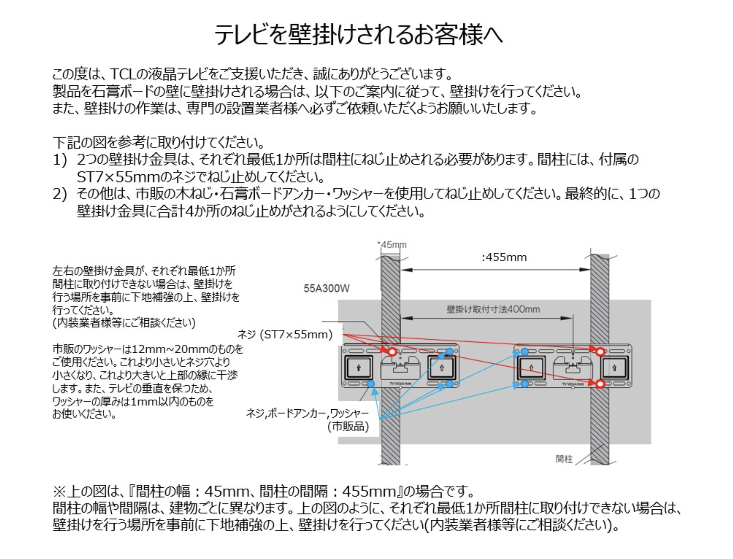 賃貸で壁掛けできるかが微妙。壁美人は無理そうだった(ネジ穴が2つしかない