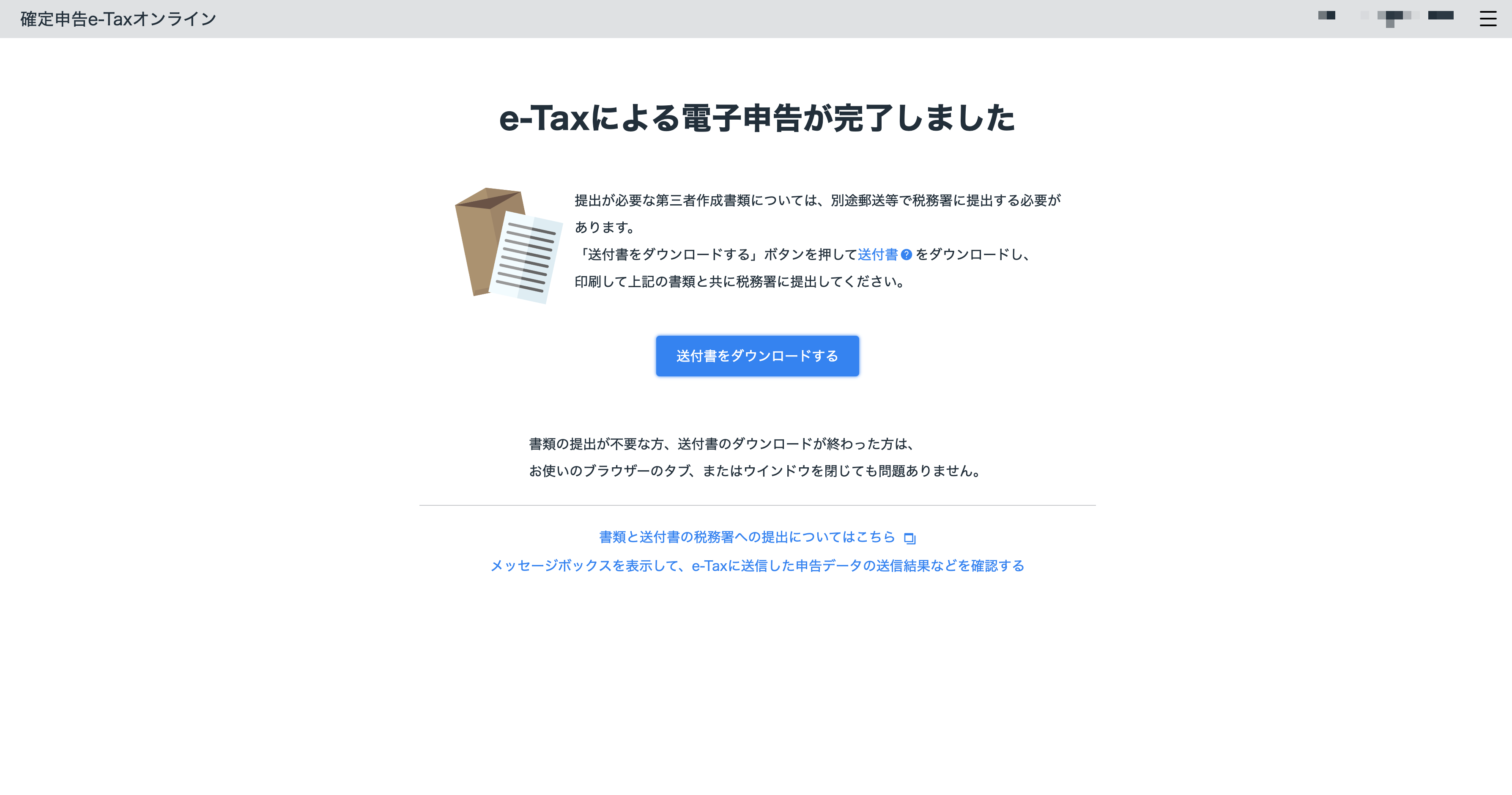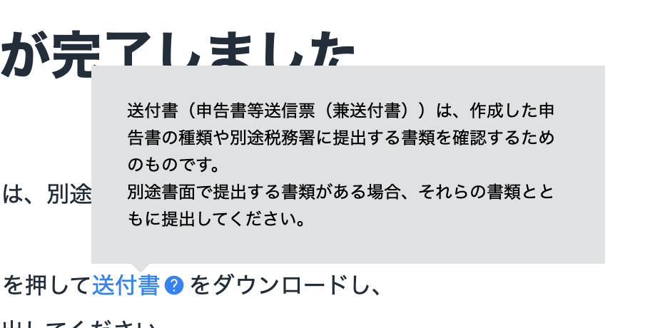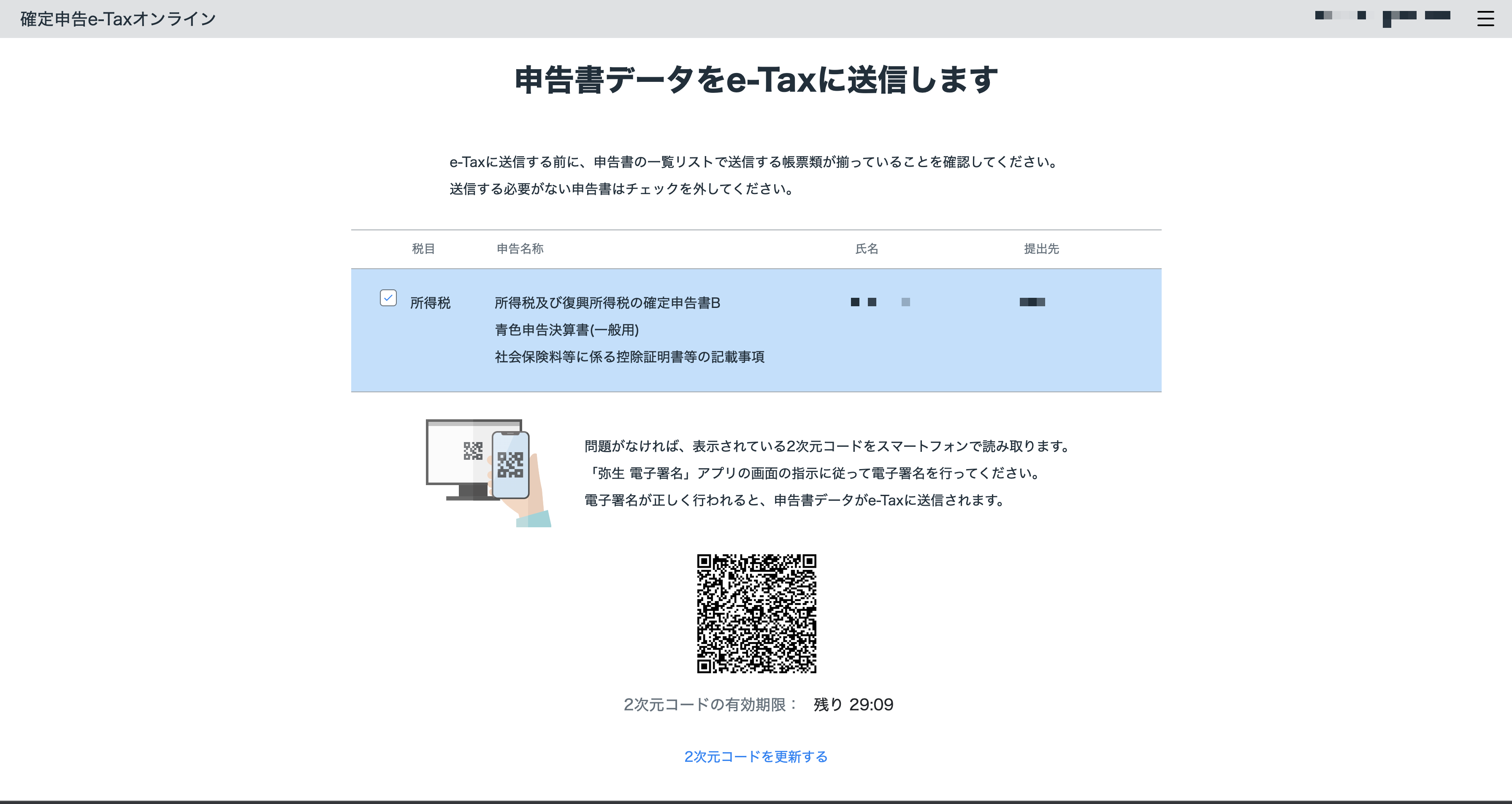 - PC上の、バーコードが表示されていた画面が自動で切り替わり、データが送信され、画面上のリンクから申告書等送信票(兼送付書)をできるようになる